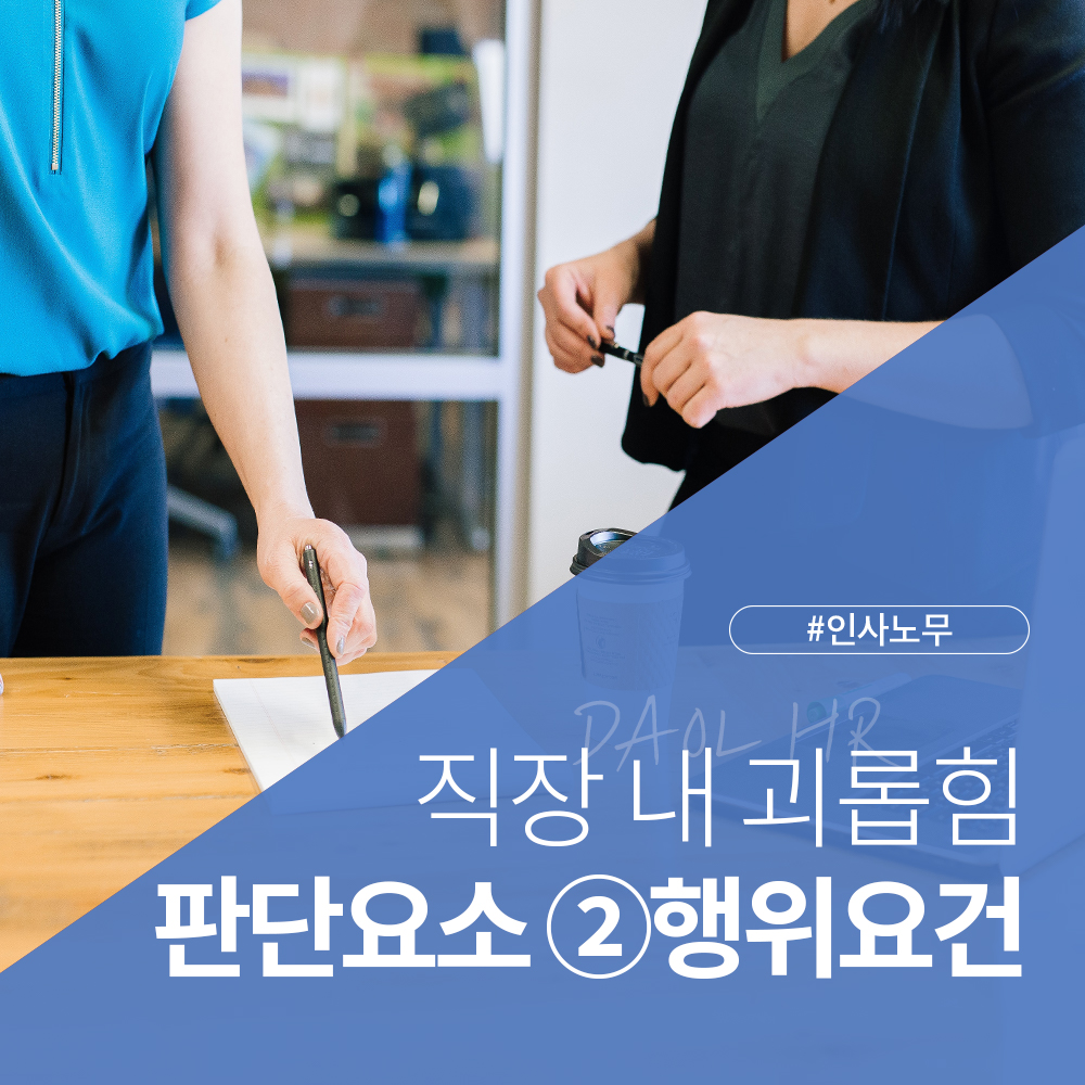 직장 내 괴롭힘을 판단하는 데에는 3가지 판단요소가 있습니다. 행위자/행위요건/행위장소 인데요. 지난 포스팅에서는 첫 번째 요소인 행위자에 대해 알아보았습니다. 이번에는 두 번째 요소인 행위 요건에 대해 살펴볼까요?