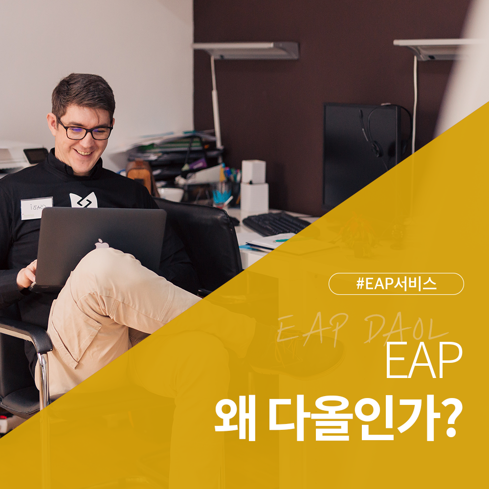근로복지 기본법 제83조에서도 모든 기업이 근로자 지원 프로그램을 도입, 실시하도록 권장하고 있습니다. 또 근로복지공단은 EAP 전문기관들과 협력하여 근로복지넷을 만들고, 근로자의 스트레스 해결을 돕기 위한 EAP 무상 서비스를 제공하고 있습니다. EAP 전문기업 다올은 '하는 일마다 모두 다 복이 온다.'라는 뜻을 가진 순우리말을 기업명으로 정했습니다. 대한민국 전 근로자가 행'복'하길 바라는 마음을 담았습니다. 기업이 다올과 함께 근로자의 행복을 응원해야 하는 세 가지 이유를 살펴볼까요?