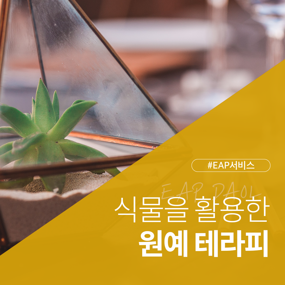 EAP 전문기업 다올이 진행 중인 원예 테라피도 있습니다. 작은 정원 즉, 테라리움을 가꾸는 힐링 키트를 참여자의 집까지 배송해드리고 온라인으로 실시간 강의를 진행합니다. 한번 만들고 사라지는 소품이 아니라 사무실이나 집 등 내가 원하는 곳에 테라리움을 배치해두고 식물이 자라는 과정을 지켜볼 수 있습니다. 다육식물 뿐만 아니라 소품 역할을 하는 피규어나 계절 식물, 다양한 질감을 가진 흙을 직접 만지면서 일상의 스트레스에서 벗어나는 시간을 가집니다. 코로나19로 아쉽게도 비대면 강의를 진행할 수밖에 없지만, 오프라인 강의 못지않은 퀄리티를 위해 다올과 전문 강사진 모두 열심히 노력하고 있습니다.